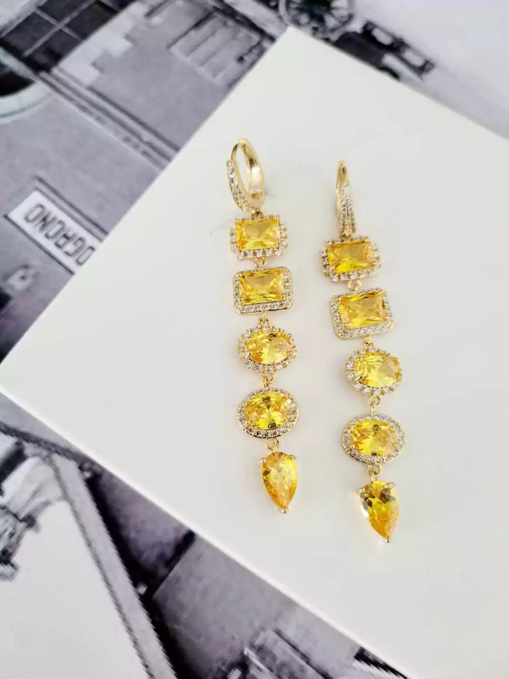Aros con base dorada y zirconias cristal y amarillo , elegantes y protagonistas.