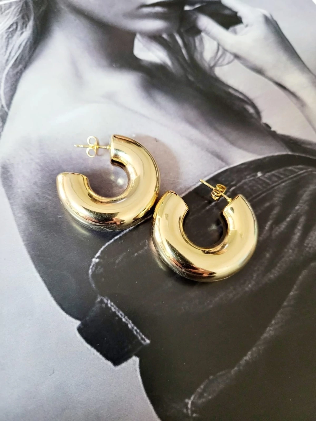 Argollas de acero tubo gruesas bañadas en oro