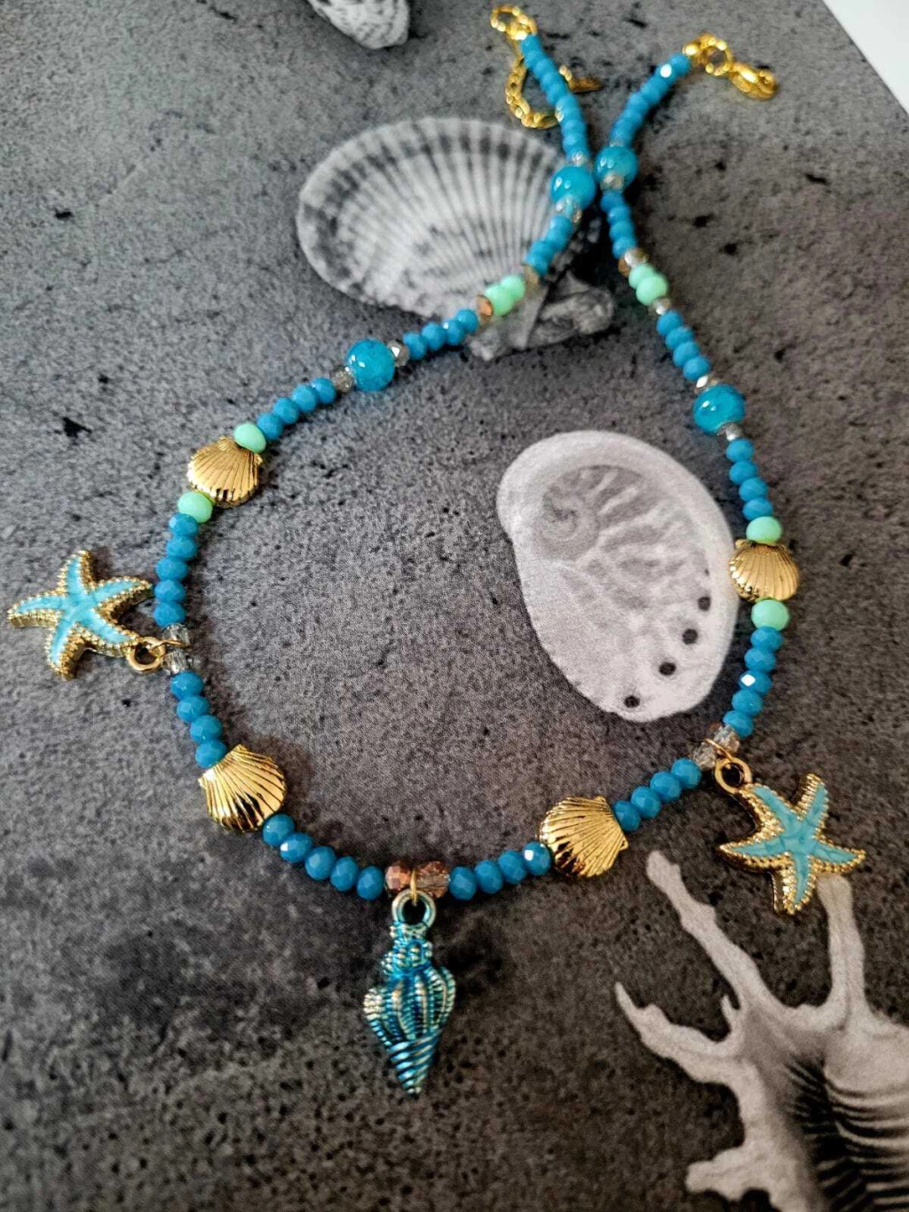 Collar con cristales, piedras , dijes bañados en oro y esmaltados.