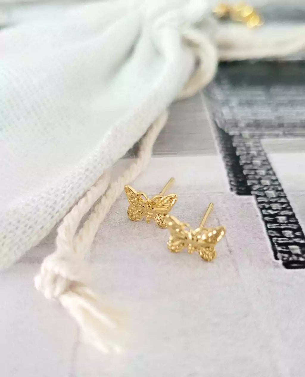 Aros mariposa bañados en oro amarillo