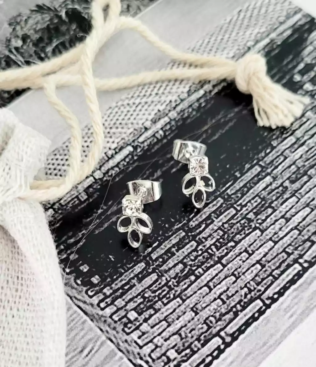 Aros con piedra bañados en oro amarillo o rosé, de 1 cm de largo
