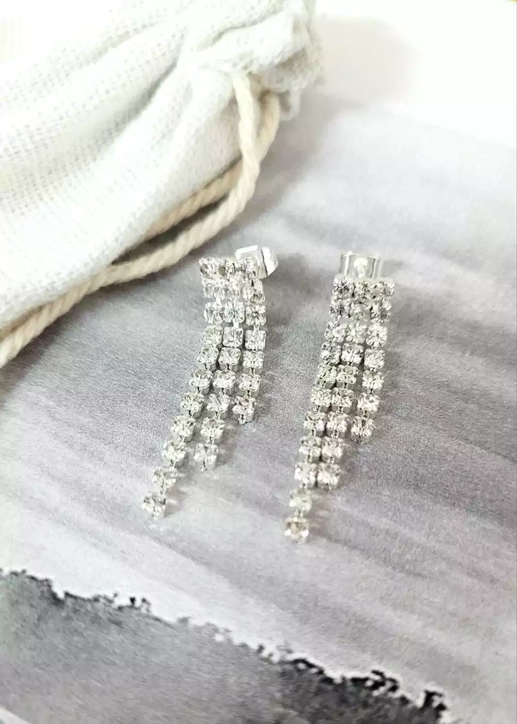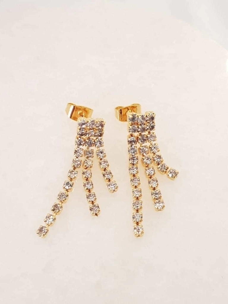 Aros largos con strass bañados en oro amarillo o rosé, de 3 cm de largo