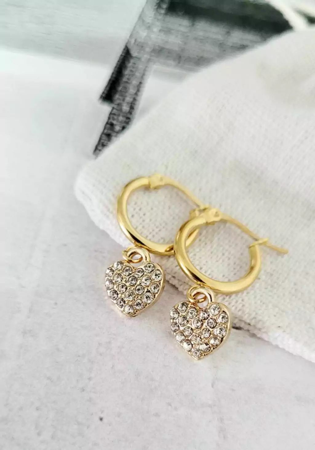 Argollitas con dije corazón de micro pavé bañados en oro amarillo .