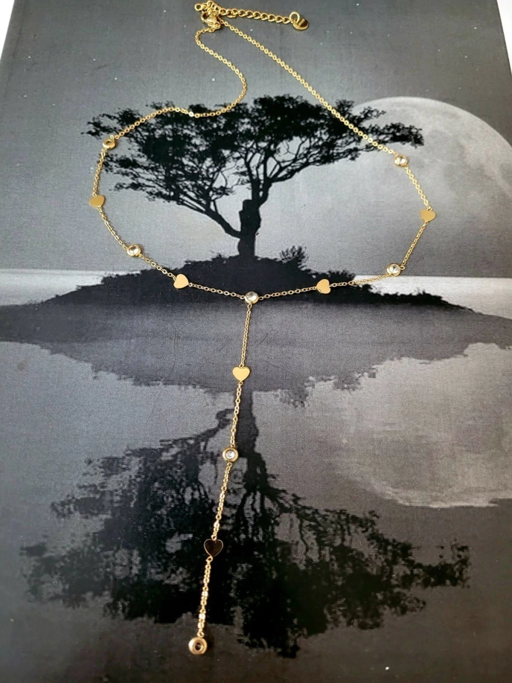 Collar bañado en oro con dijes y piedras cristal.
