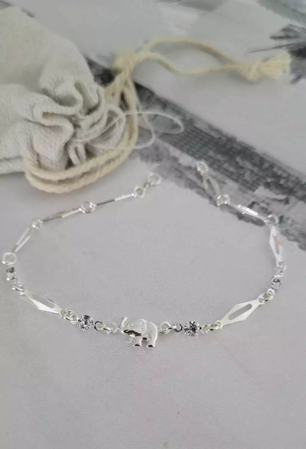 Pulsera con diseño de elefantes y strass , bañada en plata.