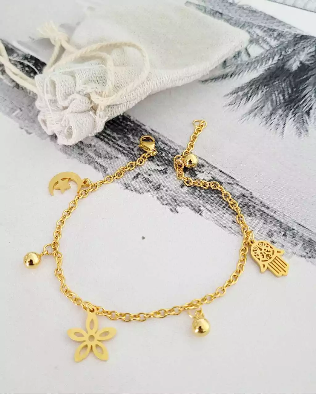 Pulsera con dijes bañado en oro rosé, de 20 cm de largo