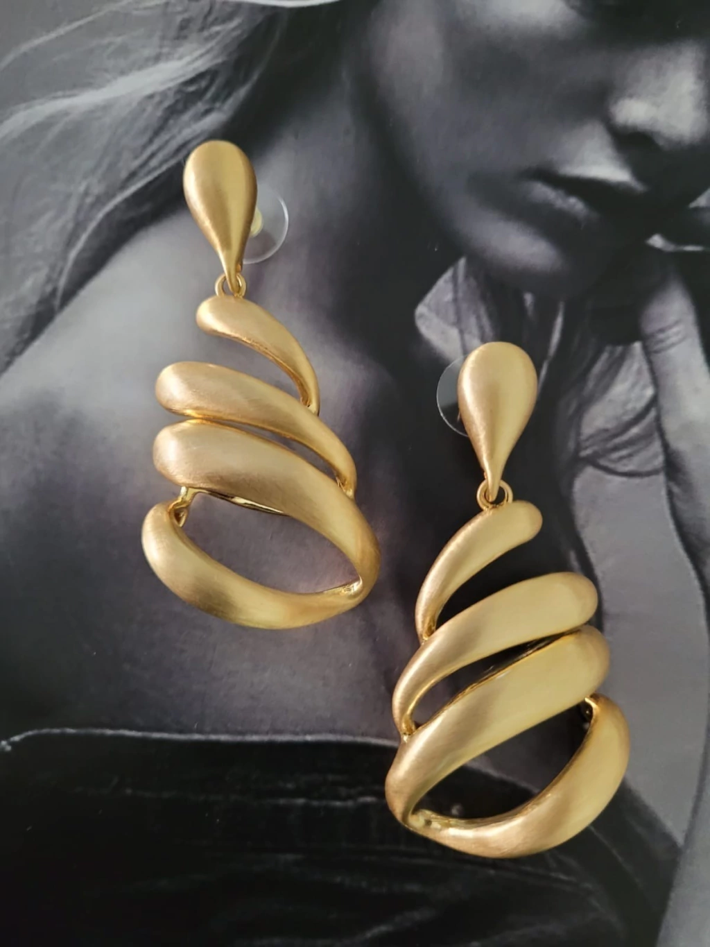 Aros de diseño asimétrico y moderno. Ligeros y cómodos. Ideal para elevar un look minimalista . Dorado mate