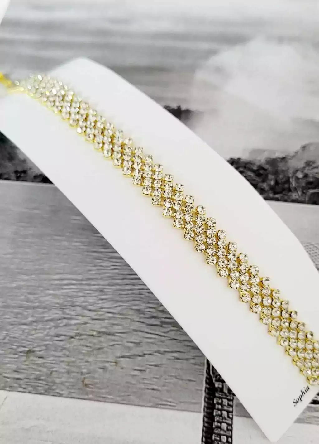 Pulsera de strass con base dorada.