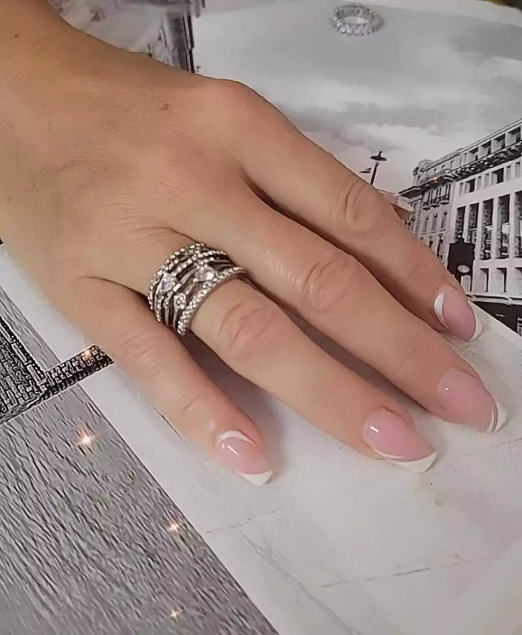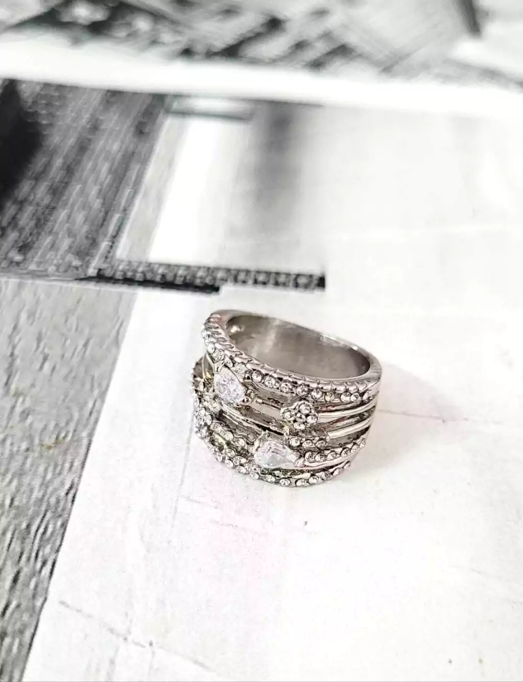 Anillo con base plateada con piedras cristal. Número 17, 18 y 20.