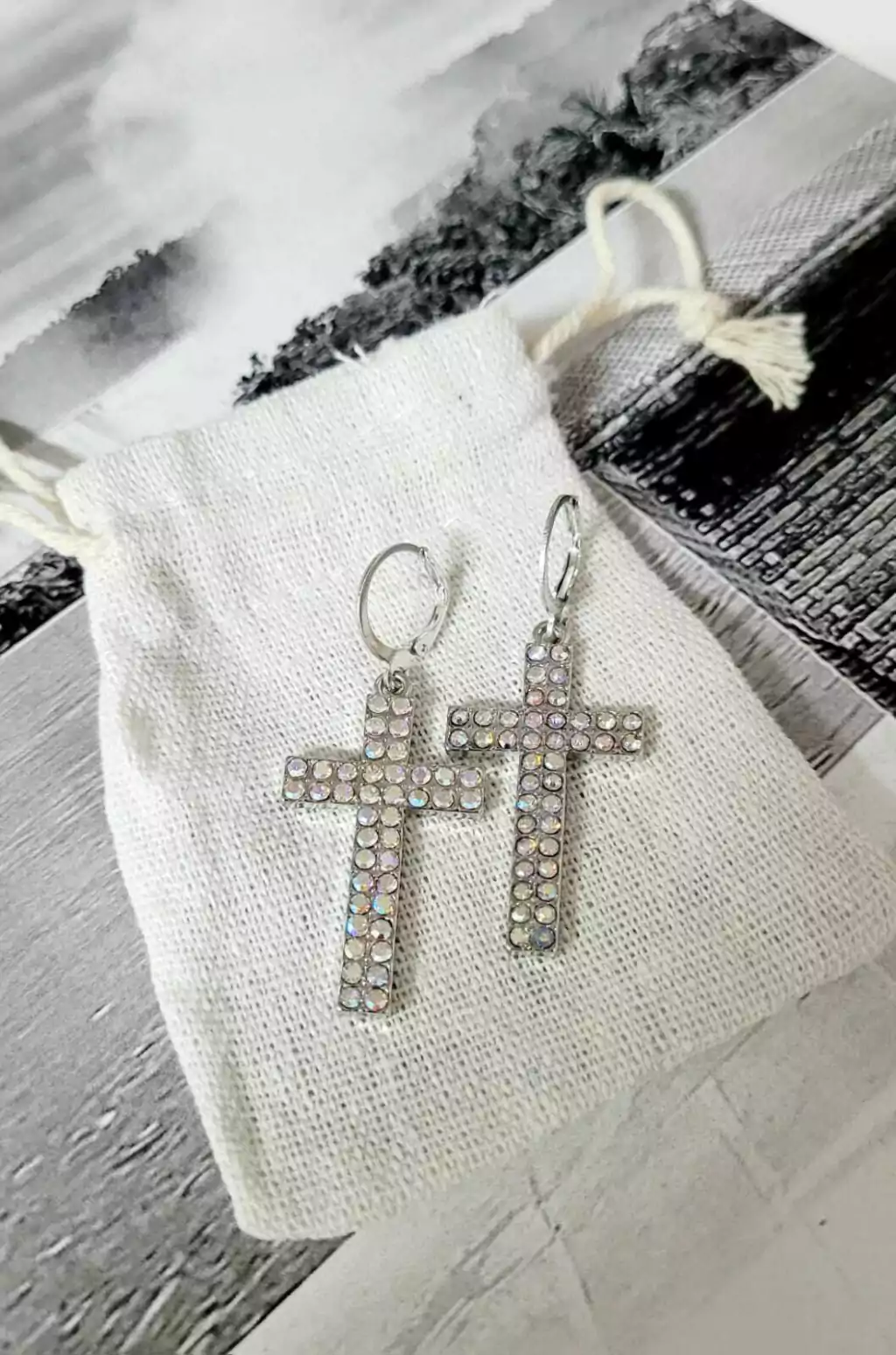 Aros cruz con strass , versátiles para tu look urbano o para la noche.