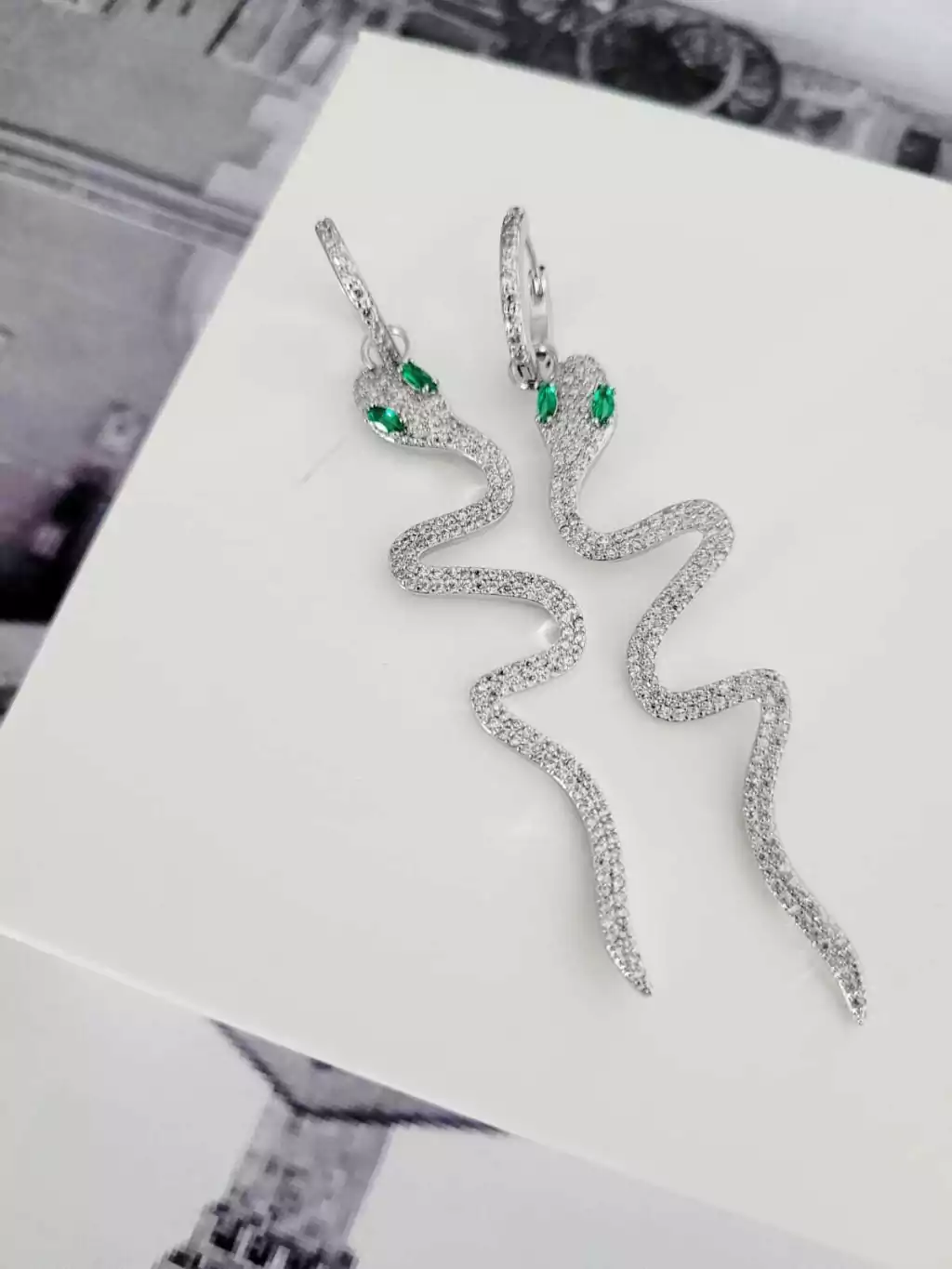 Aros con base plateada y zirconias cristal y verde , elegantes y protagonistas.