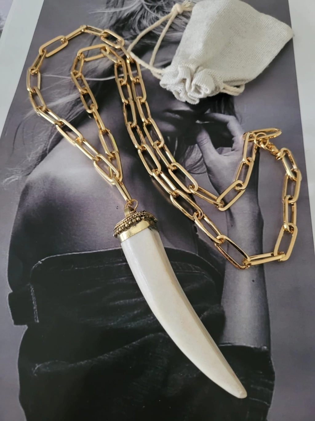 Reslizado con cadena bañada en oro 18 k y cuerno de marfil .