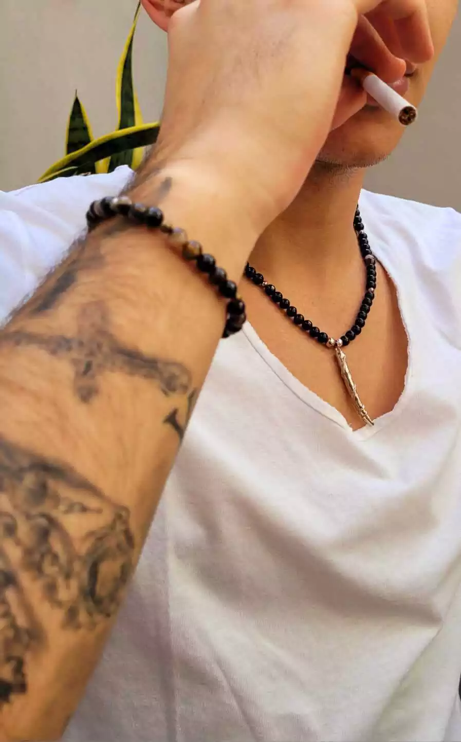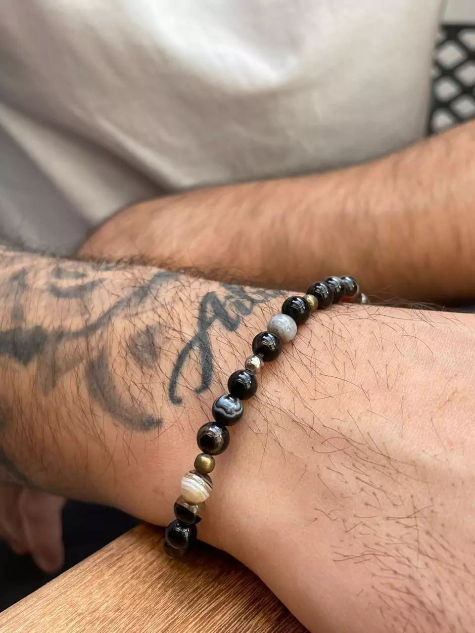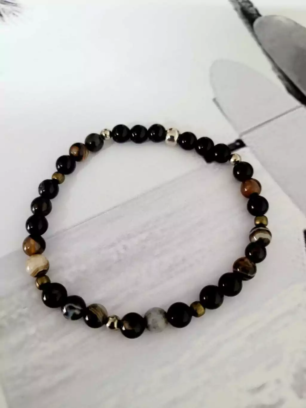 Renly está realizada con piedras Ágata y detalles de niquel y bronce. Piedras de 6 mm. Combinala con nuestro collar Renly . Medida : 7 cm de diámetro Elastizada