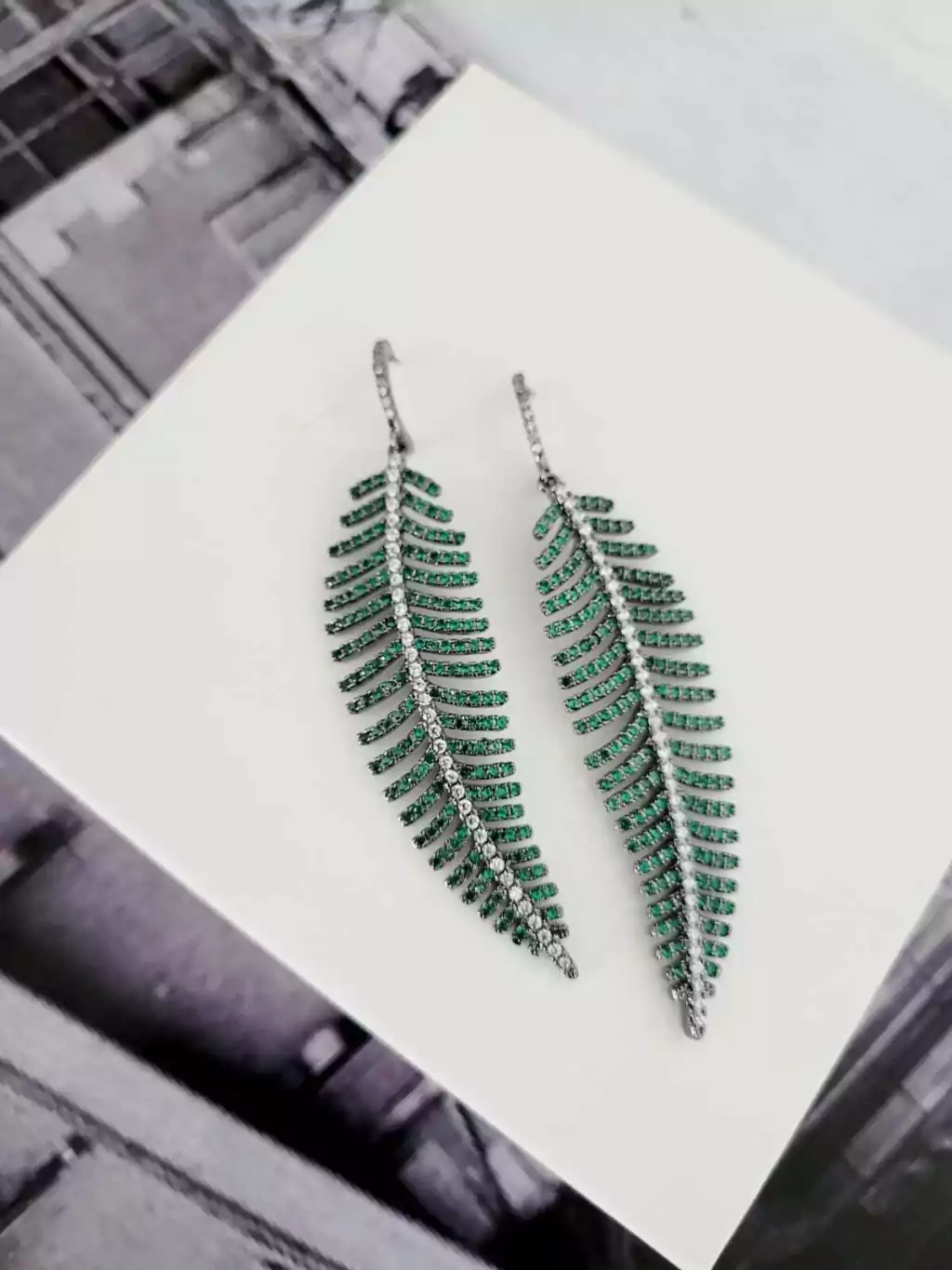 Aros con base negra y zirconias verdes, elegantes y protagonistas.