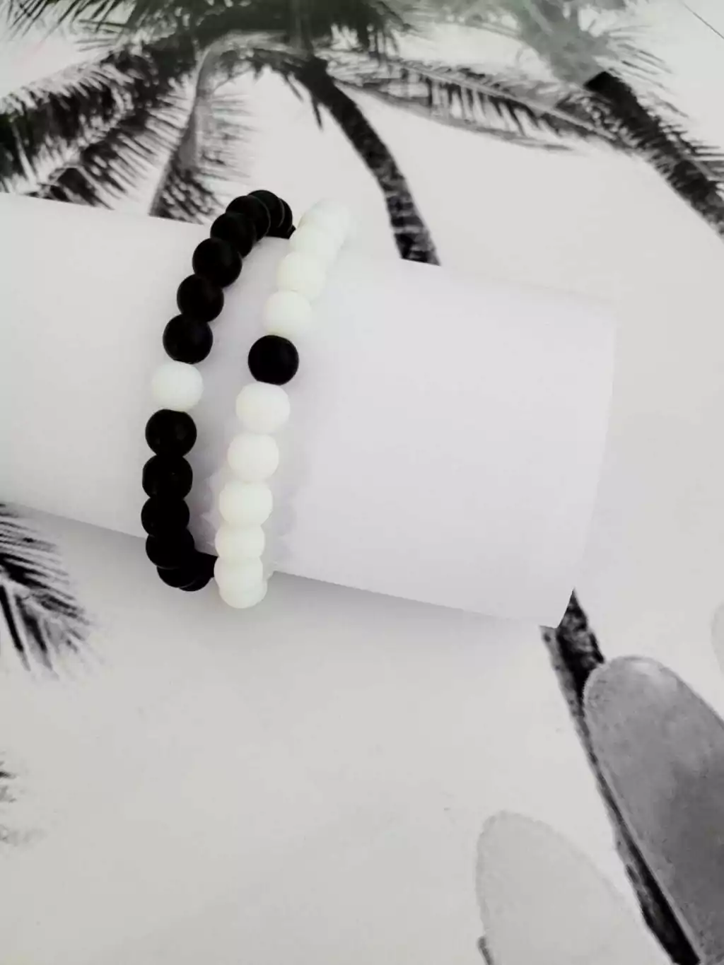 Duo de pulseras con piedras de resina blanco mate y Ónix.