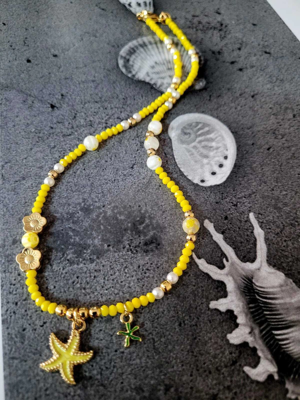 Collar con cristales, piedras de murano, detalles bañados en oro y dije esmaltado.