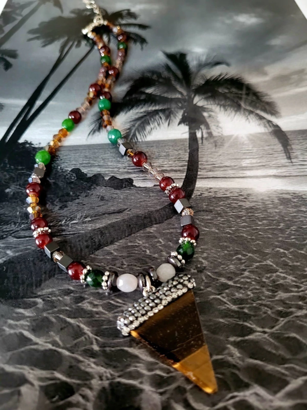 Collar de diseño actual, realizado con cristales y piedras naturales y dije Ágatha.