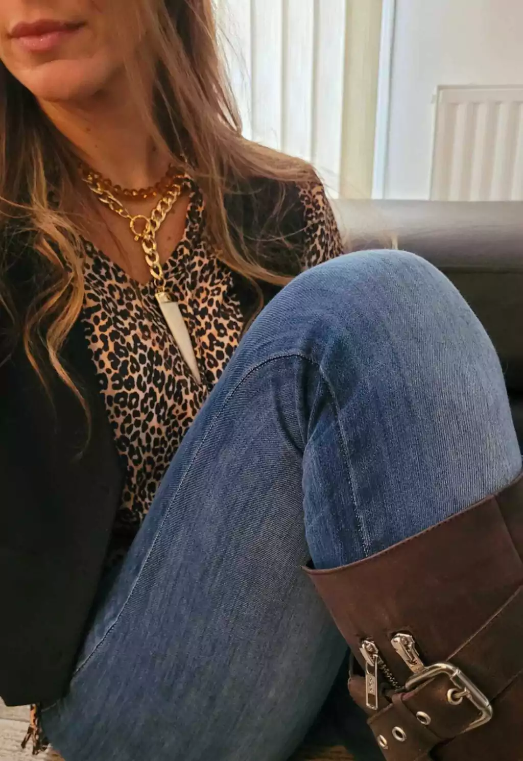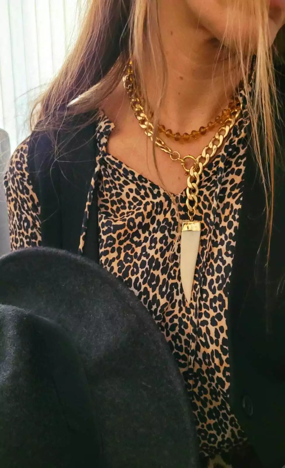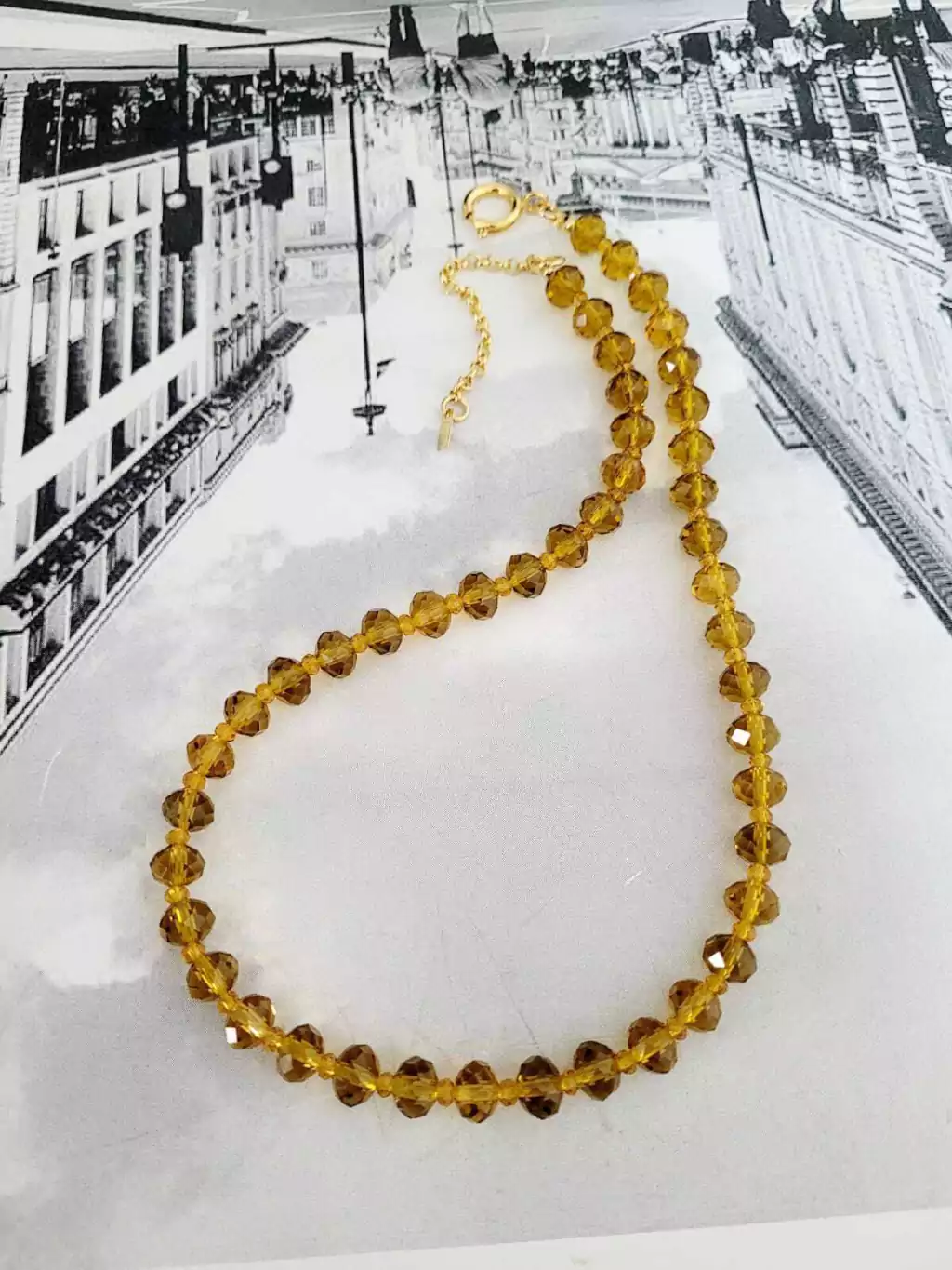Collar de cristales caramel con terminaciones y cierre bañados en oro .